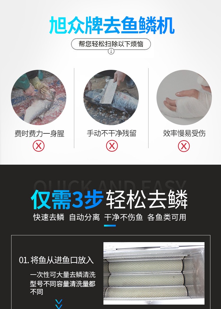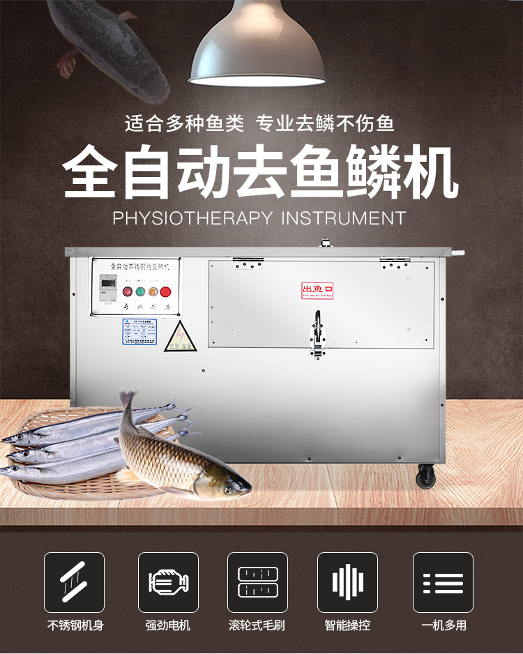 3.功能強大,直接實現(xiàn)去魚鱗和殺魚的工藝,生產(chǎn)效率高,產(chǎn)量大。